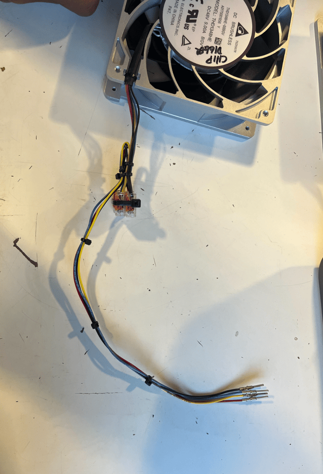 - Connect the other slot in the Wago connector to the new fan making sure to correctly match the colors. You can use electrician's zipties to keep wires tidy and act as a strain relief under tension.