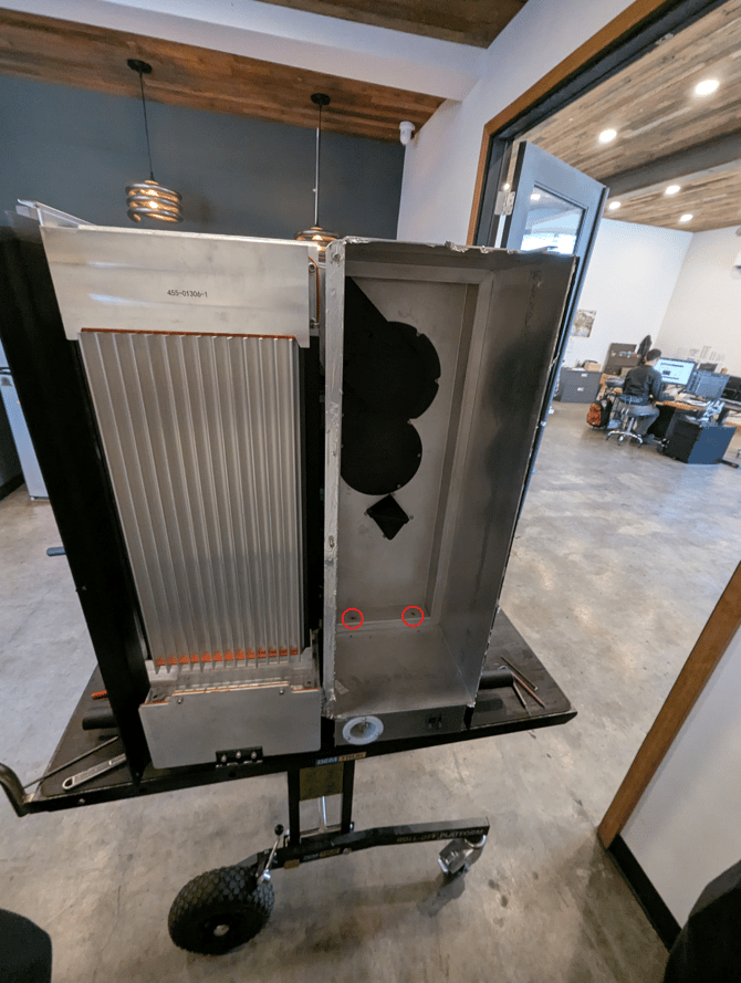 10. You now have access to the high voltage box. If you are replacing a heater you must always inspect the Current Sense PCB (circled in red below). If the board looks singed, burnt, or damaged swap that component. If it looks fine, please leave in place and ship the unused part back to us with all other components.