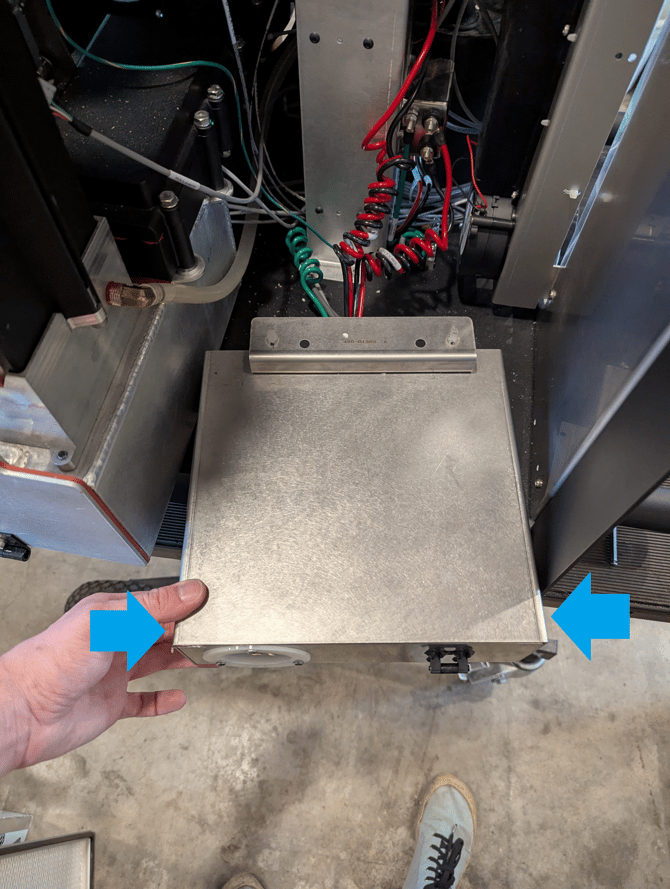 8. Lift the filter box out of the roaster to expose the high voltage box.